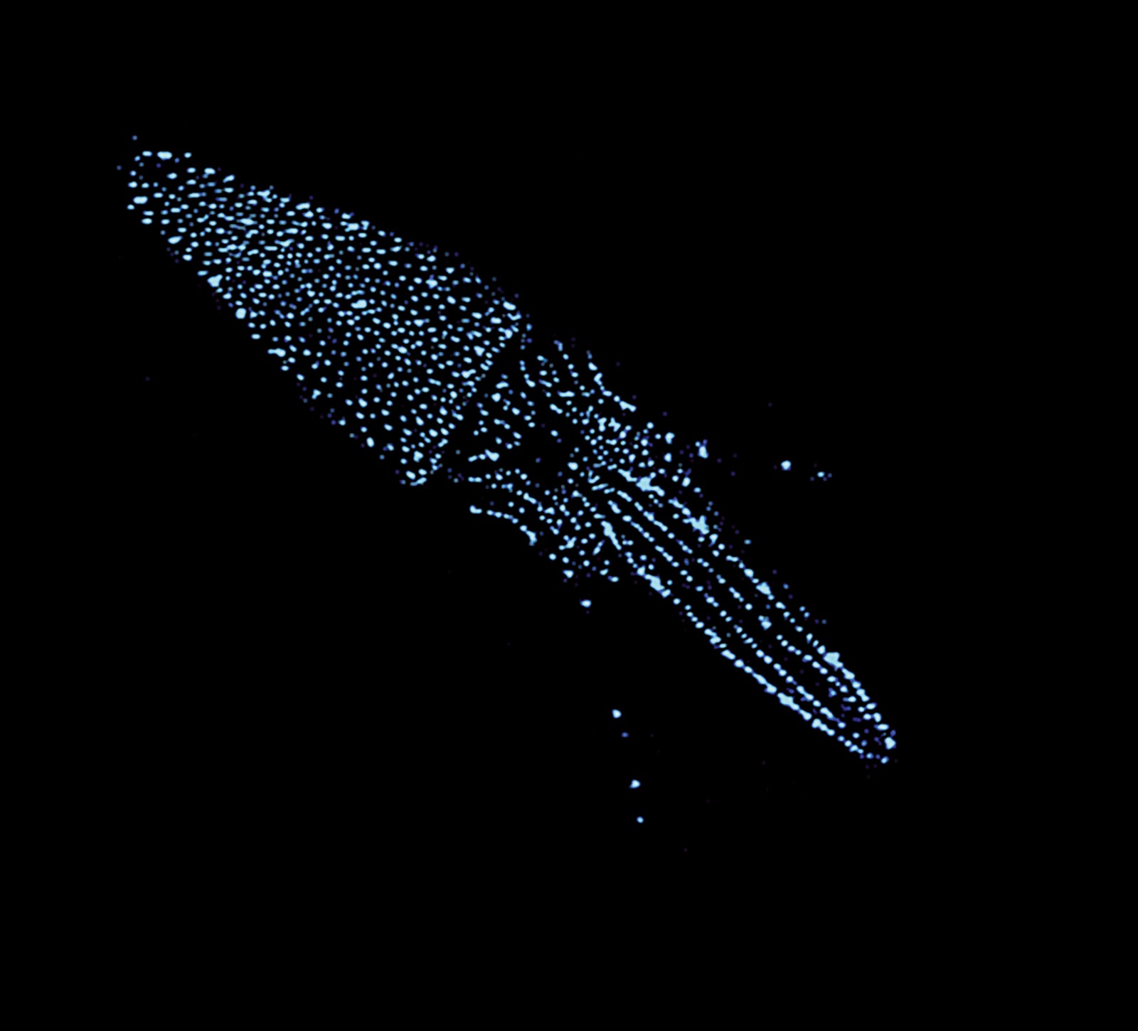 This is a siphonophore, a colony of hundreds of jellies living along a central core. The fireworks display are the toxic, bioluminiscent tentacles used to lure and snare prey.